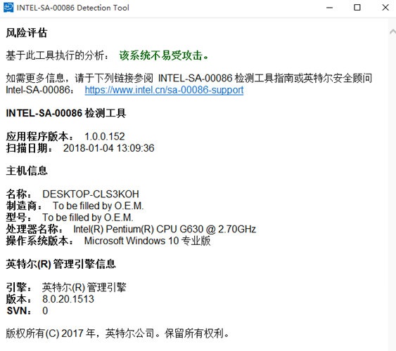 英特爾發(fā)布的檢測(cè)工具只能幫你檢測(cè)設(shè)備是否受到漏洞的影響,但該工具并不能幫你直接更新或者修復(fù)漏洞。目前該公司已經(jīng)將相關(guān)的技術(shù)細(xì)節(jié)披露給主板制造商,因此用戶需要等待主板制造商發(fā)布新版驅(qū)動(dòng)才可修復(fù)。