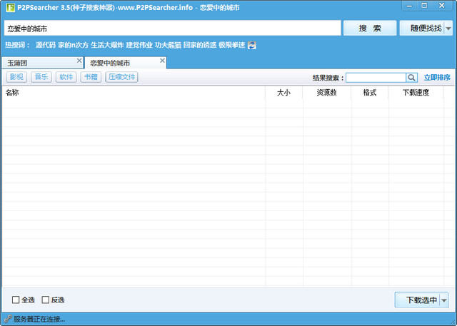 1、打開p2psearcher,在搜索欄內(nèi)可搜索你想要的關(guān)鍵詞。