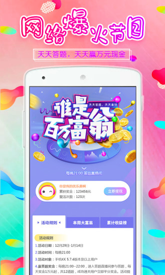 誰是百萬富翁手機(jī)版全民都可參與的有獎(jiǎng)問答游戲。答題贏現(xiàn)金!