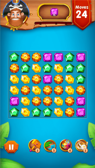 如果你想成為一個富有的海盜,那么你可以選擇這個海盜珍寶島游戲,你通過消除至少3個寶石就可以獲得它們,每一關(guān)卡都有不同的任務(wù),你需要消除不同數(shù)量的寶石,非常有趣的挑戰(zhàn)!