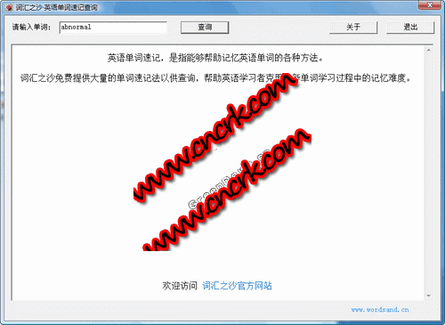 詞匯之沙免費(fèi)提供了大量的英語單詞速記法以供查詢,幫助英語學(xué)習(xí)者克服在新單詞學(xué)習(xí)過程中的記憶難度,是背單詞軟件的輔助記憶工具。
