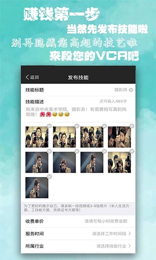 點(diǎn)擊發(fā)布技能,填寫技能詳細(xì)信息,輕松上傳您也可以在技能中發(fā)現(xiàn)您需要的人,幫助您