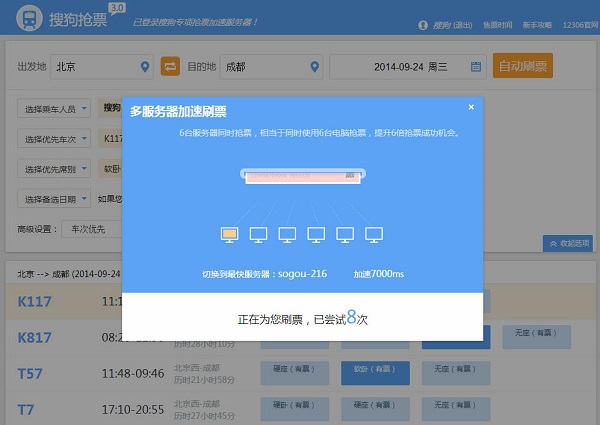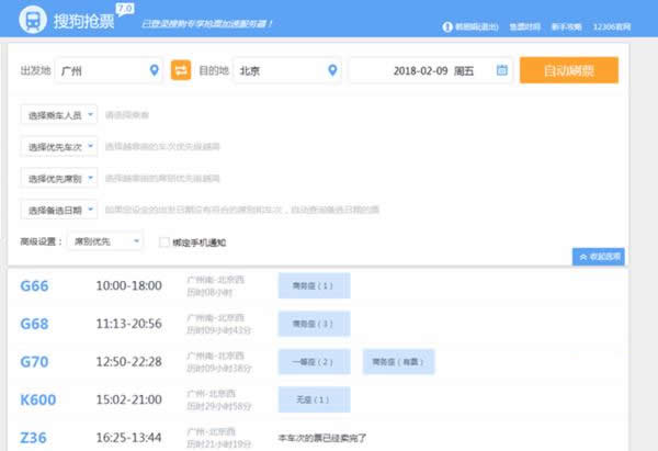 一鍵預約 - 你預約·我們搶搜狗全自動離線搶票幫你回家團圓