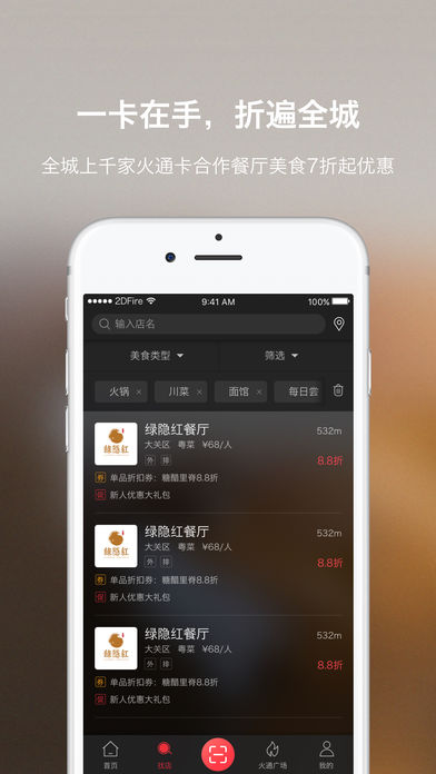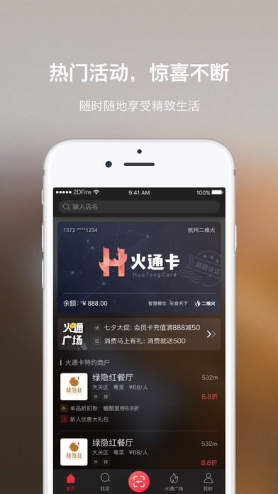 1、一卡在手,折遍全城下載APP,綁定火通卡,即可享有全城上千家火通卡合作餐廳美食7折起優(yōu)惠