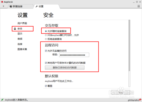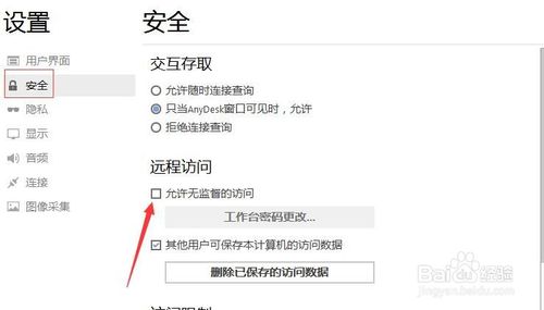 在設(shè)置界面下,點擊左側(cè)的“安全”設(shè)置,右側(cè)找到“遠程訪問”勾選允許無監(jiān)督的訪問