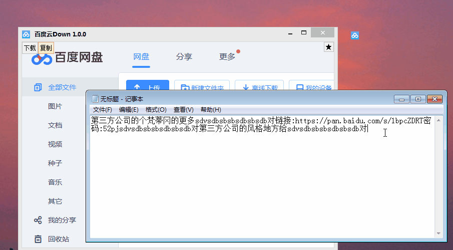 很多人說不知道怎么用,我在這里說說.把主窗口最小化后(自動隱藏),然后復(fù)制你要下載的百度云地址