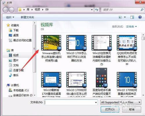 這時會打開本地硬盤,選擇我們要修改的視頻文件,然后點擊打開按鈕。