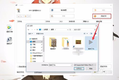 點擊MP4格式之后就進(jìn)入了添加視頻頁面,點擊頁面上的添加文件按鈕,將我們放在電腦桌面上的flv格式視頻添加進(jìn)去。