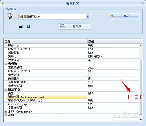 點擊“附加字幕”右邊的“打開對話框”按鈕