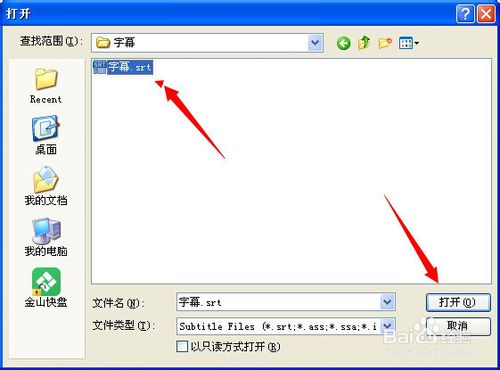選擇字幕文件,單擊[打開]按鈕