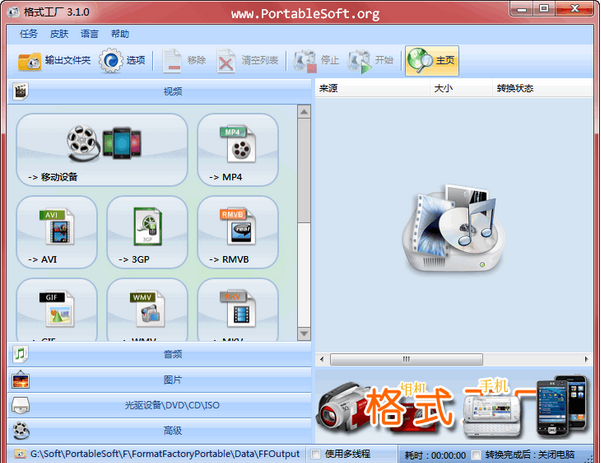 格式工廠 (Format Factory) 是一款功能全面的格式轉(zhuǎn)換軟件,支持轉(zhuǎn)換幾乎所有主流的多媒體文件格式,包括視頻 MP4、AVI、3GP、WMV、MKV、VOB、MOV、FLV、SWF、GIF;音頻 MP3、WMA、FLAC、AAC、MMF、AMR、M4A、M4R、OGG、MP2、WAV、WavPack;圖像 JPG、PNG、ICO、BMP、GIF、TIF、PCX、TGA 等。新版本格式工廠中,更對移動播放設(shè)備做了補(bǔ)充,如 iPhone、iPod、PSP、魅族、手機(jī)等,使你不需要去費(fèi)勁研究不同設(shè)備對應(yīng)什么播放格式,而是直接從格式工廠的列表中選擇你手中的設(shè)備型號,就能輕松開始轉(zhuǎn)換,更快更方便地實現(xiàn)廣大移動一族的需求。
