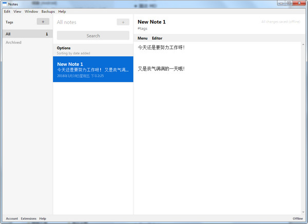 你的同步帳戶允許你訪問你的筆記,不管你在哪個設(shè)備上。創(chuàng)建同步帳戶也會創(chuàng)建一個強大的加密密鑰,從您的密碼。在app的左下方的菜單中點擊“account”設(shè)置一個賬戶。