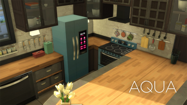 這臺冰箱有9種不同的顏色樣本,其中8的比賽之前我上傳的simkitchen 2000系列灶具,一個完全匹配的廚房!