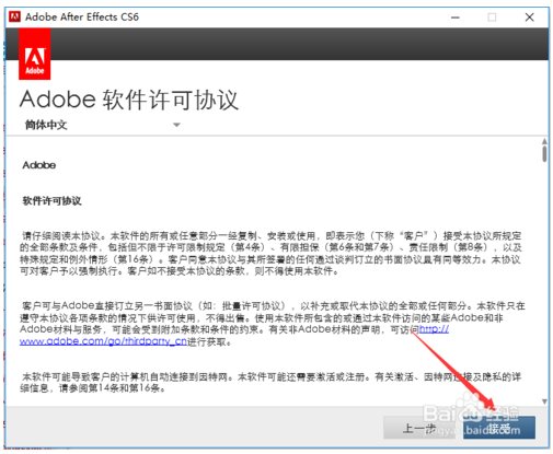 第四步:Adobe After Effects cs6【AE CS6】許可協(xié)議,點(diǎn)擊“接受” 即可。