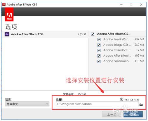 第六步:Adobe After Effects cs6【AE CS6】安裝選項(xiàng),根據(jù)自己的要求自己選擇,建議大家不要安裝到C盤(pán)。