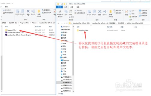 第十步:打開(kāi)安裝包的漢化程序,選擇Support Files整個(gè)文件進(jìn)行復(fù)制,然后題解黏貼到AE的根目錄的Support Files文件進(jìn)行替換。復(fù)制過(guò)程中有很多文件需要替換,點(diǎn)擊替換即可。這樣軟件就可以進(jìn)行漢化了,再次打開(kāi)軟件就是中文版本。