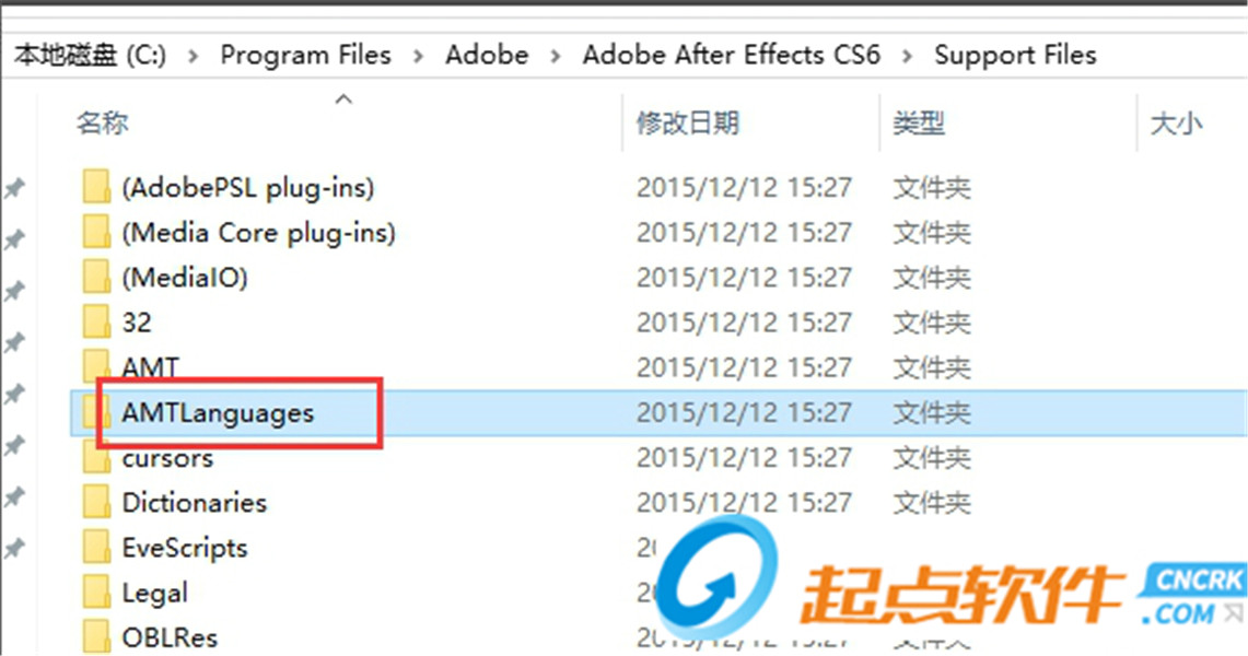 After effects CS6如何進(jìn)行中英文界面切換?1、打開(kāi)AMTLanguages這個(gè)文件夾。