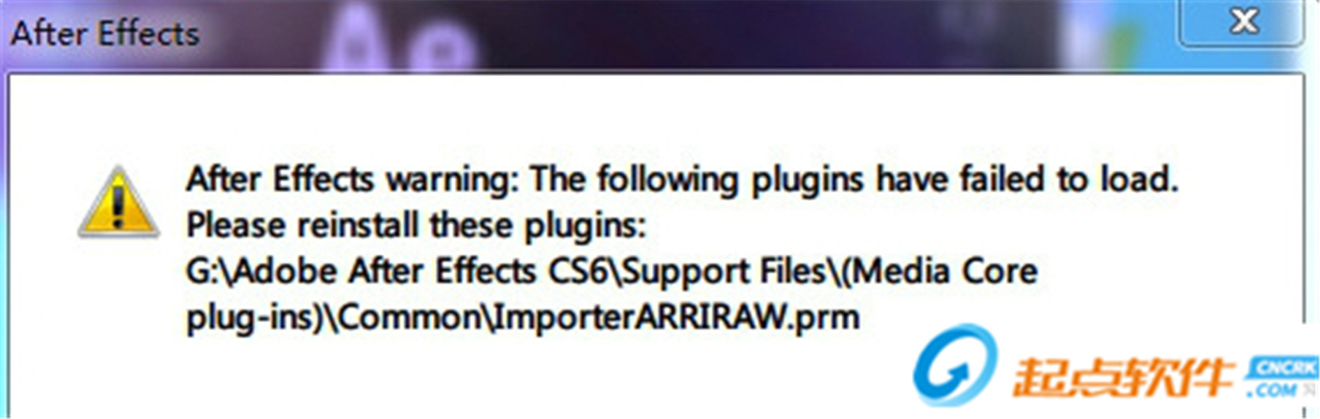 After effects CS6運(yùn)行提示插件加載失敗,未能加載以下插件“ImporterARRIRAW.prm”的解決方案?