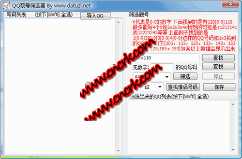 新加查情侶號功能 第一步先導入你自己要篩選QQ號的記事本! 【點擊導入QQ按鈕】 第二步再點擊篩選QQ,篩選QQ完成之后就可以導出 【點擊篩選按鈕】