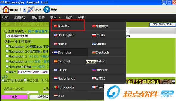 1、安裝驅(qū)動后2、運(yùn)行MotioninJoy主程序,選擇語言