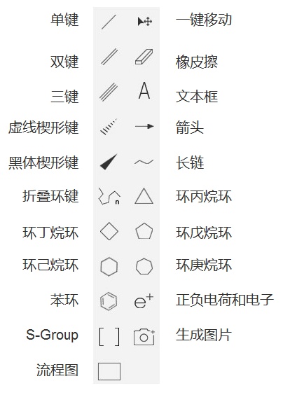 【符號(hào)】工具:用于繪制重要化學(xué)符號(hào)。含有符號(hào)子工具箱。