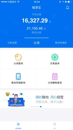 在瑞源寶軟件上用戶可隨時(shí)隨地掌握實(shí)時(shí)經(jīng)營數(shù)據(jù),提供分潤查詢、交易查詢、激活終端查詢等核心功能。