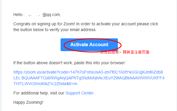 4、到剛輸入的郵箱里找到一封來自ZOOM的郵件打開(有可能會(huì)在垃圾郵件或者廣告郵件內(nèi)),點(diǎn)擊郵件內(nèi)“Activate Account”跳轉(zhuǎn)到注冊頁面。