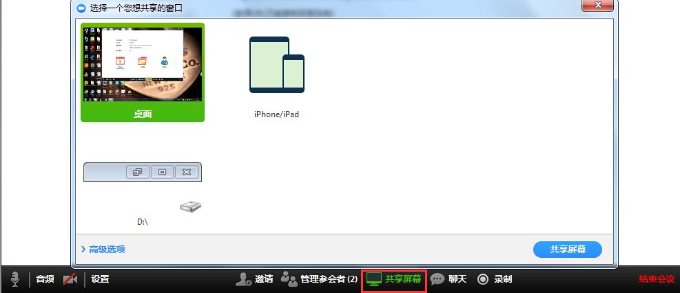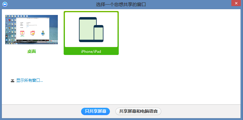 ●共享屏幕、窗口、或iPhone/iPad