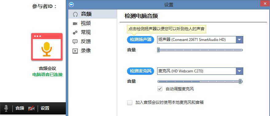 首先,點(diǎn)擊連接電腦音頻來加入音頻會(huì)議。