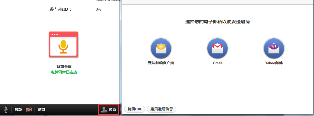 ●邀請:邀請更多參會(huì)者進(jìn)入會(huì)議