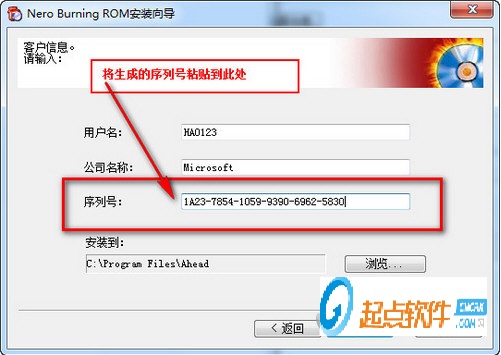 3、將序列號(hào)粘貼到安裝向?qū)顚?xiě)系列號(hào)的方框中,然后點(diǎn)擊下一步,指導(dǎo)安裝完成。