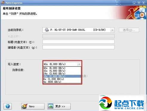 4、選擇寫(xiě)入速度(一般都是選擇16X),然后再點(diǎn)刻錄