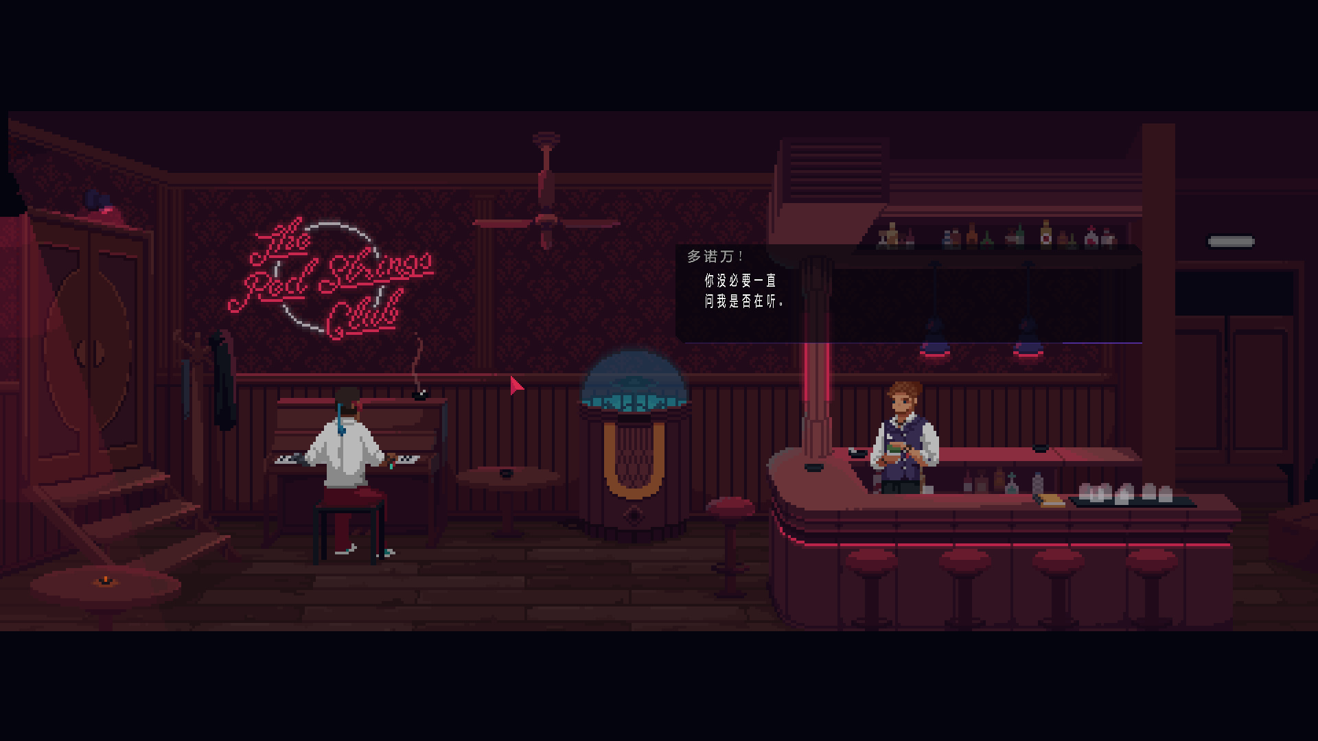 本作采用了時(shí)下非常流行的賽博朋克世界觀,一個(gè)名為T(mén)he Red Strings Club秘密酒吧里的酒保們,另一個(gè)身份則是一群活躍于暗影世界的黑客,游戲講述的就是他們調(diào)查和阻止某個(gè)大企業(yè)陰謀的故事。 游戲繼承了Deconstructeam上一款作品《天在看》的一些特點(diǎn)和玩法,并且由我們熟悉的Devolver Digital發(fā)行。【漢化人員名單】