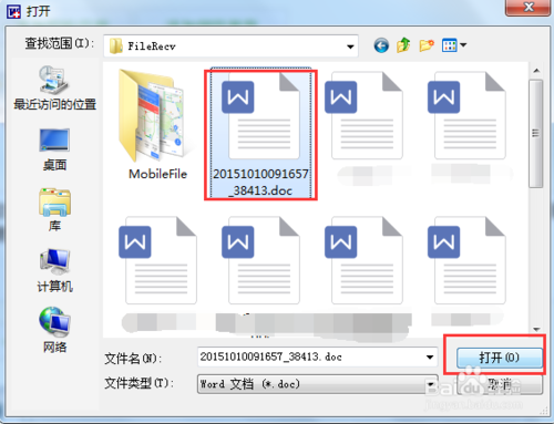 打開文件選擇窗口,選擇待修復(fù)的文件后,點(diǎn)擊“打開”按鈕。
