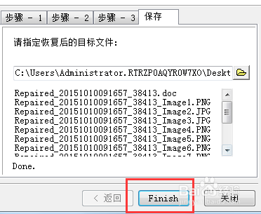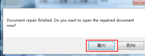 保存完成,會(huì)有下圖所示彈窗提示,點(diǎn)擊“是”會(huì)關(guān)閉彈窗并打開保存的文檔,點(diǎn)擊“否”會(huì)關(guān)閉彈窗,此時(shí)點(diǎn)擊下圖2中“finish”按鈕,完成文檔修復(fù),即可關(guān)閉軟件。