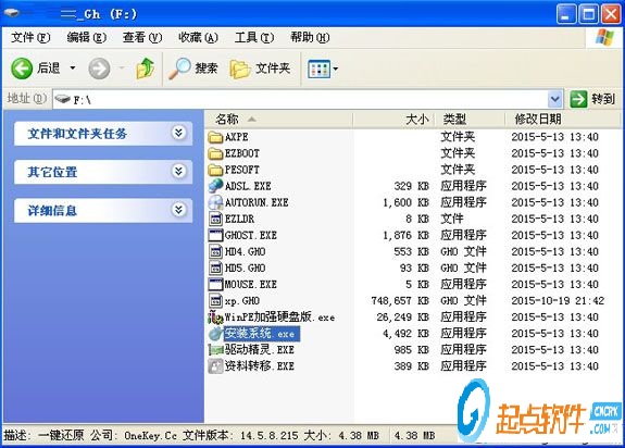 2、雙擊“安裝系統(tǒng).exe”打開(kāi)OneKey Ghost,選擇安裝在C盤(pán),確定;