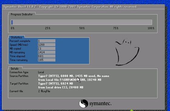 4、還原之后,電腦自動(dòng)重啟,開(kāi)始執(zhí)行windows xp安裝版系統(tǒng)的安裝;