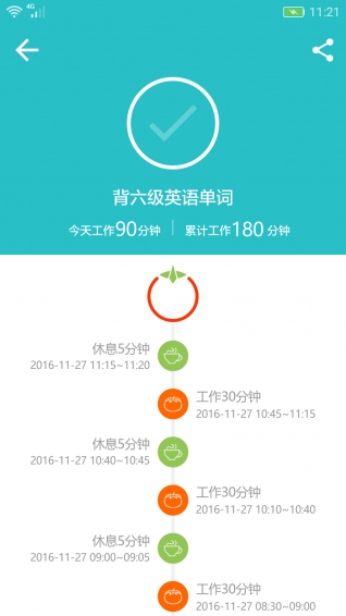 番茄進(jìn)攻app這款番茄時(shí)鐘簡(jiǎn)潔高效的實(shí)踐了番茄工作法(PomodoroTechnique),她能夠幫助您集中注意力,提高效率,是工作和學(xué)習(xí)的好幫手。番茄工作法是弗朗西斯科·西里洛于1992年創(chuàng)立的一種相對(duì)于GTD更微觀的時(shí)間管理方法,是一種簡(jiǎn)單易行的時(shí)間管理方法,它的核心思想是集中精力完成工作,排除干擾,合理安排休息時(shí)間。番茄時(shí)鐘可以幫助您實(shí)現(xiàn)這種工作方式,一個(gè)番茄時(shí)間一般為25分鐘,計(jì)時(shí)開(kāi)始后您需要全身心的投入到工作中,25分鐘結(jié)束后會(huì)進(jìn)入5分鐘的休息計(jì)時(shí),每過(guò)四個(gè)番茄時(shí)間后,會(huì)有一次20分鐘的長(zhǎng)休息時(shí)間。通過(guò)工作和休息的交替循環(huán)進(jìn)行,可以使您更有效率、更健康的工作或?qū)W習(xí)。