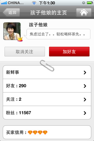 2.個(gè)人中心,消息提醒,新鮮事、好友信息、消息提醒,一目了然,時(shí)尚話題聊個(gè)夠!