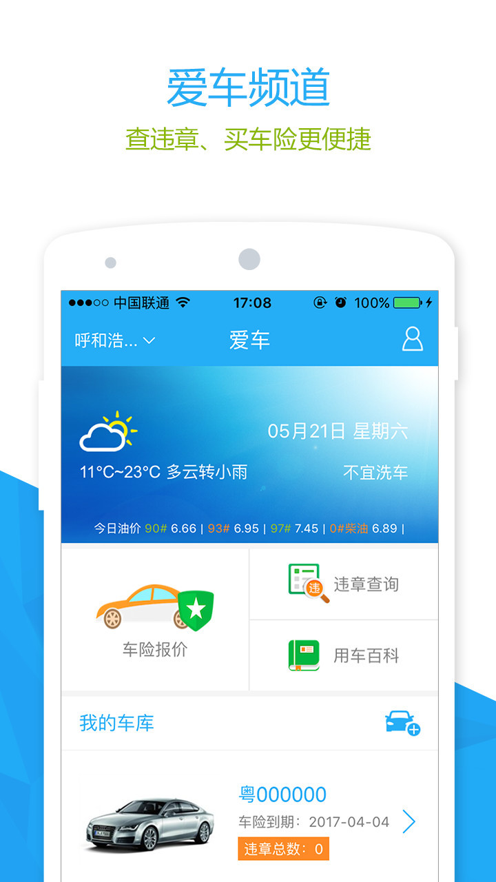 【買車險(xiǎn)】與平安、人保和中華聯(lián)合等多家公司合作,為您提供車險(xiǎn)詢價(jià)、多方案比價(jià)、在線支付、快速出單一條龍服務(wù),買車險(xiǎn)更快更便捷;【查違章】全國三百余地市違章查詢,添加愛車新違章自動(dòng)推送,關(guān)心您的愛車狀況;