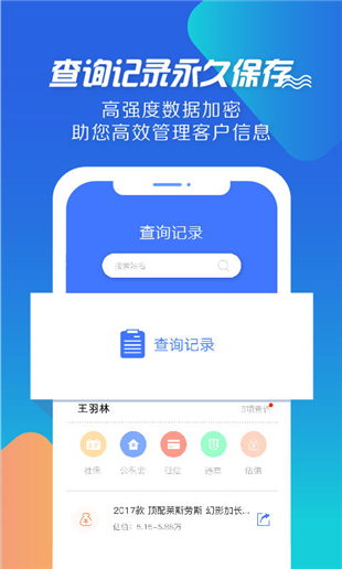 -社保、公積金、征信查詢,快至10秒獲取報(bào)告;-車輛估值、車輛違章實(shí)時(shí)查詢,準(zhǔn)確評(píng)估客戶資產(chǎn)狀況;