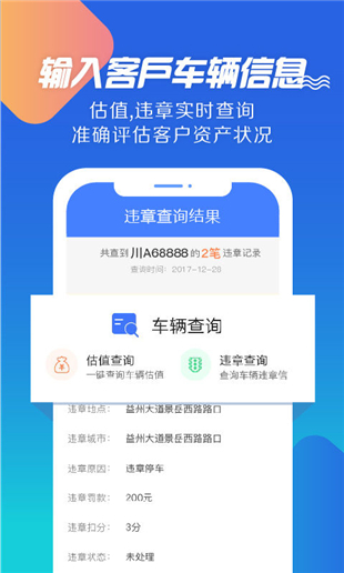 估值,違章實(shí)時(shí)查詢,準(zhǔn)確評(píng)估客戶資產(chǎn)狀況