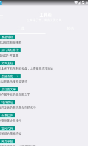 打開DD工具箱app軟件,在工具箱一欄有很多功能,準(zhǔn)星輔助、旅行青蛙修改、文件直鏈等