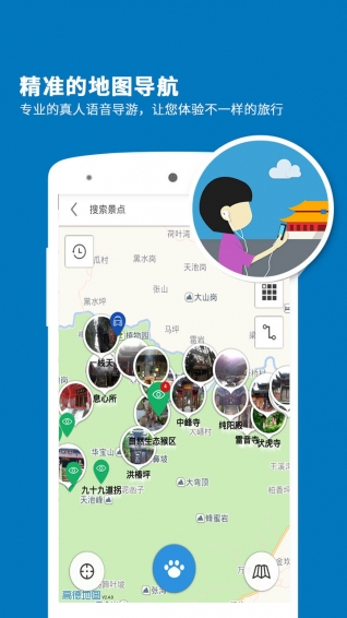 峨眉山導(dǎo)游app是一個(gè)專業(yè)的智能語音導(dǎo)游系統(tǒng),專門為喜歡自由行的旅行愛好者而設(shè)計(jì)。峨眉山導(dǎo)游app是將語音導(dǎo)游、門票信息、旅游攻略、景點(diǎn)美圖、旅游足跡等全面集中展現(xiàn)。 峨眉山導(dǎo)游app像一個(gè)經(jīng)驗(yàn)豐富的導(dǎo)游,當(dāng)您進(jìn)入景區(qū)時(shí),及時(shí)地向您推薦您當(dāng)前的游覽線路及沿途景點(diǎn);當(dāng)您漫步在景區(qū)時(shí),峨眉山導(dǎo)游能根據(jù)當(dāng)前您所處的景點(diǎn)位置,為您提供生動(dòng)的語音解說及詳盡的圖文介紹;當(dāng)您處在景區(qū)外時(shí),峨眉山導(dǎo)游是一本妙趣橫生的百科全書,圖文并茂地向您展示著景區(qū)深邃的文化內(nèi)涵和豐富的歷史積淀,讓您體驗(yàn)到景區(qū)身臨其境的愉悅感。