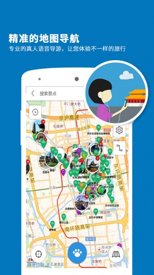 蘇州導(dǎo)游app:專業(yè)的智能語音導(dǎo)游系統(tǒng),專門為喜歡自由行的旅行愛好者而設(shè)計。雨花臺導(dǎo)游是將語音導(dǎo)游、門票信息、旅游攻略、景點美圖、旅游足跡等全面集中展現(xiàn)。 我們的智能軟件像一個經(jīng)驗豐富的導(dǎo)游,當(dāng)您進入景區(qū)時,及時地向您推薦您當(dāng)前的游覽線路及沿 途景點;當(dāng)您漫步在景區(qū)時,蘇州導(dǎo)游能根據(jù)當(dāng)前您所處的景點位置,為您提供生動的語音解說及詳盡的圖文介紹;當(dāng)您處在景區(qū)外時,蘇州導(dǎo)游是一本妙趣橫生的百科全書,圖文 并茂地向您展示著景區(qū)深邃的文化內(nèi)涵和豐富的歷史積淀,讓您體驗到景區(qū)身臨其境的愉悅感。