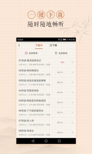 3、支持下載節(jié)目章節(jié),WIFI下載,隨時(shí)隨地可聽,無需再消耗流量。