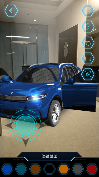 掃描真實(shí)環(huán)境,一鍵放置真實(shí)比例的奇點(diǎn)汽車(chē),點(diǎn)擊重新掃描環(huán)境,可改變平面位置;
