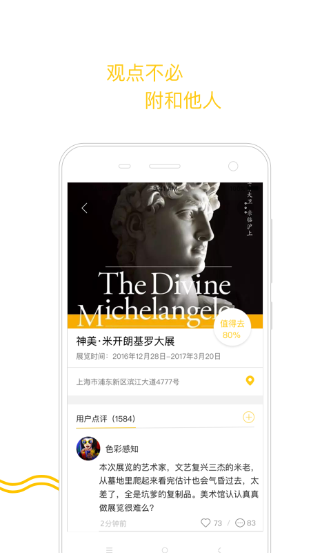 -互動社區(qū),瀏覽其他用戶分享的精彩藝術(shù)體驗,感受思想碰撞,參與內(nèi)容討論,關注志趣相投的文藝青年,線下一起看展。-藝術(shù)地標,直觀的發(fā)現(xiàn)你身邊的藝術(shù)場館與展覽活動。參與藝術(shù)地標建設,每一次互動都意味著你為這個社區(qū)做出的貢獻。在未來,你的每一份貢獻都將獲得回報。
