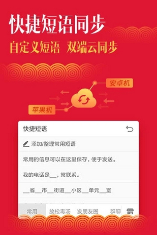 3. 快捷短語同步:自定義短語云同步,跨手機(jī)使用。