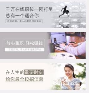百度百聘 ,聚合全網(wǎng)職位,支持求職者一站投遞。每天為用戶提供5000多萬有效職位(覆蓋600多個行業(yè)),幫助近2000萬用戶成功找到工作。目前已有200余家招聘網(wǎng)站加入百度百聘,包括:智聯(lián)招聘、前程無憂、58同城、趕集網(wǎng)、百姓網(wǎng)、獵聘網(wǎng)、BOSS直聘、丁香人才、看準(zhǔn)網(wǎng)、智聯(lián)卓聘、拉勾網(wǎng)、脈脈、內(nèi)推網(wǎng)、小美工作、領(lǐng)英工作、中華英才網(wǎng)、大街網(wǎng)、應(yīng)屆生求職網(wǎng)等。
